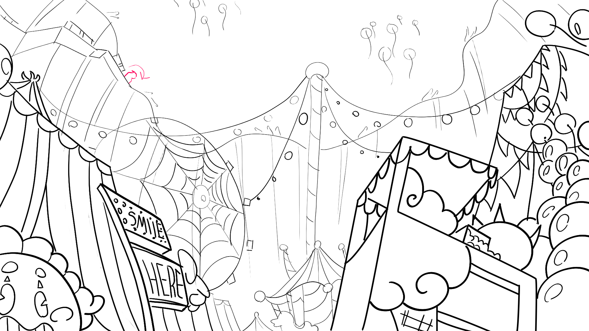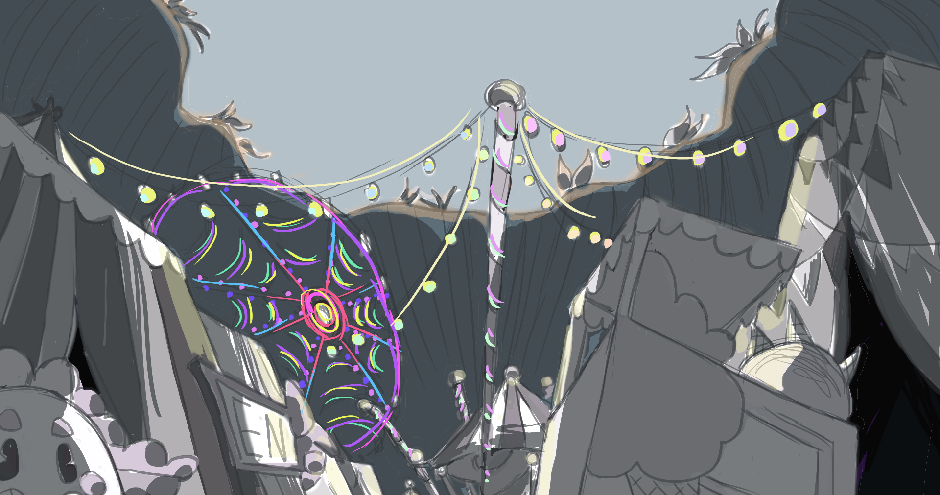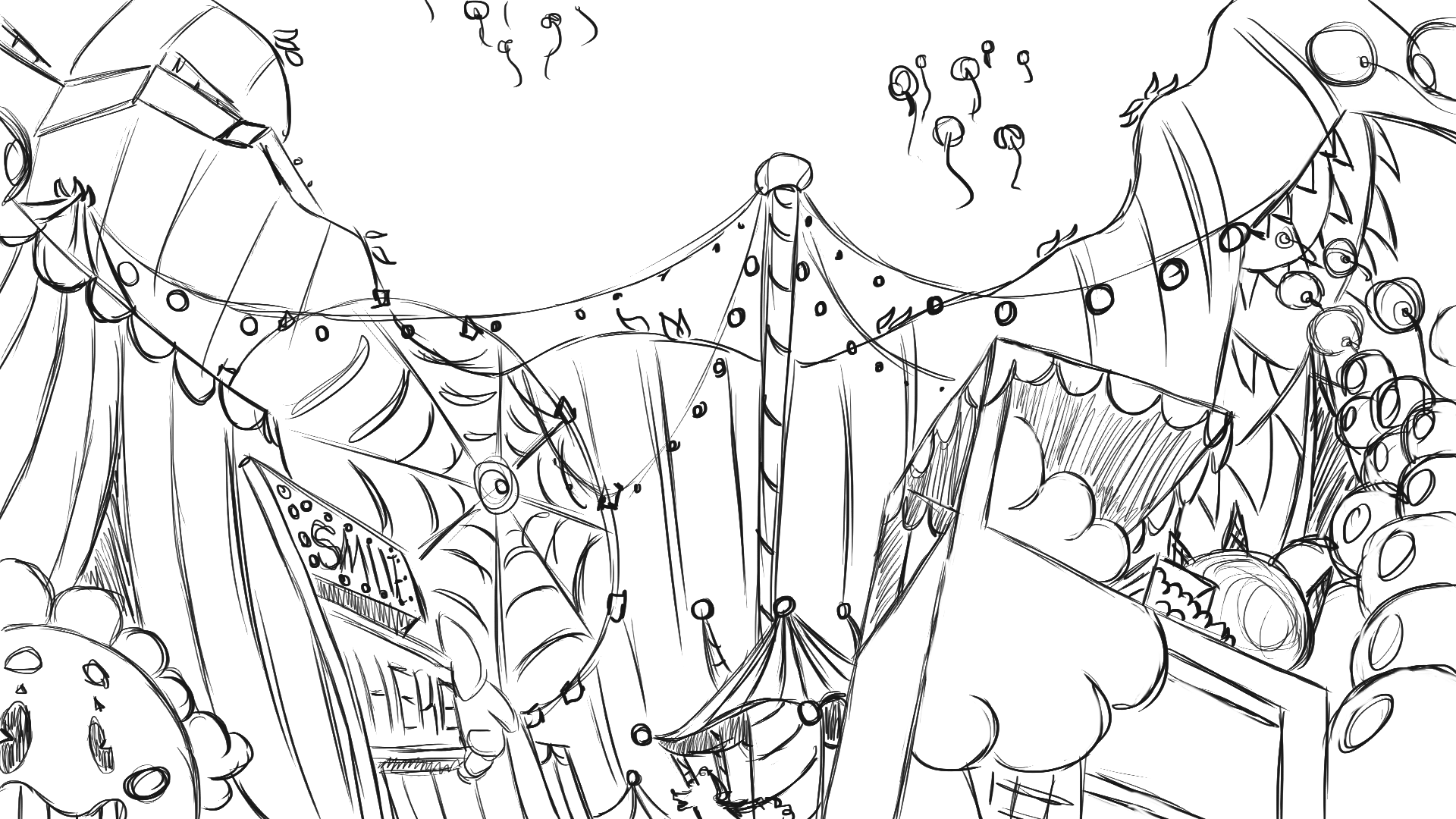 Inspired by carnivals, this wonderland of games is settled within a crevice- luring unsuspecting victims with its song. My first perspective work, I had to do a ton of research on fairs and carnivals to get the props right.