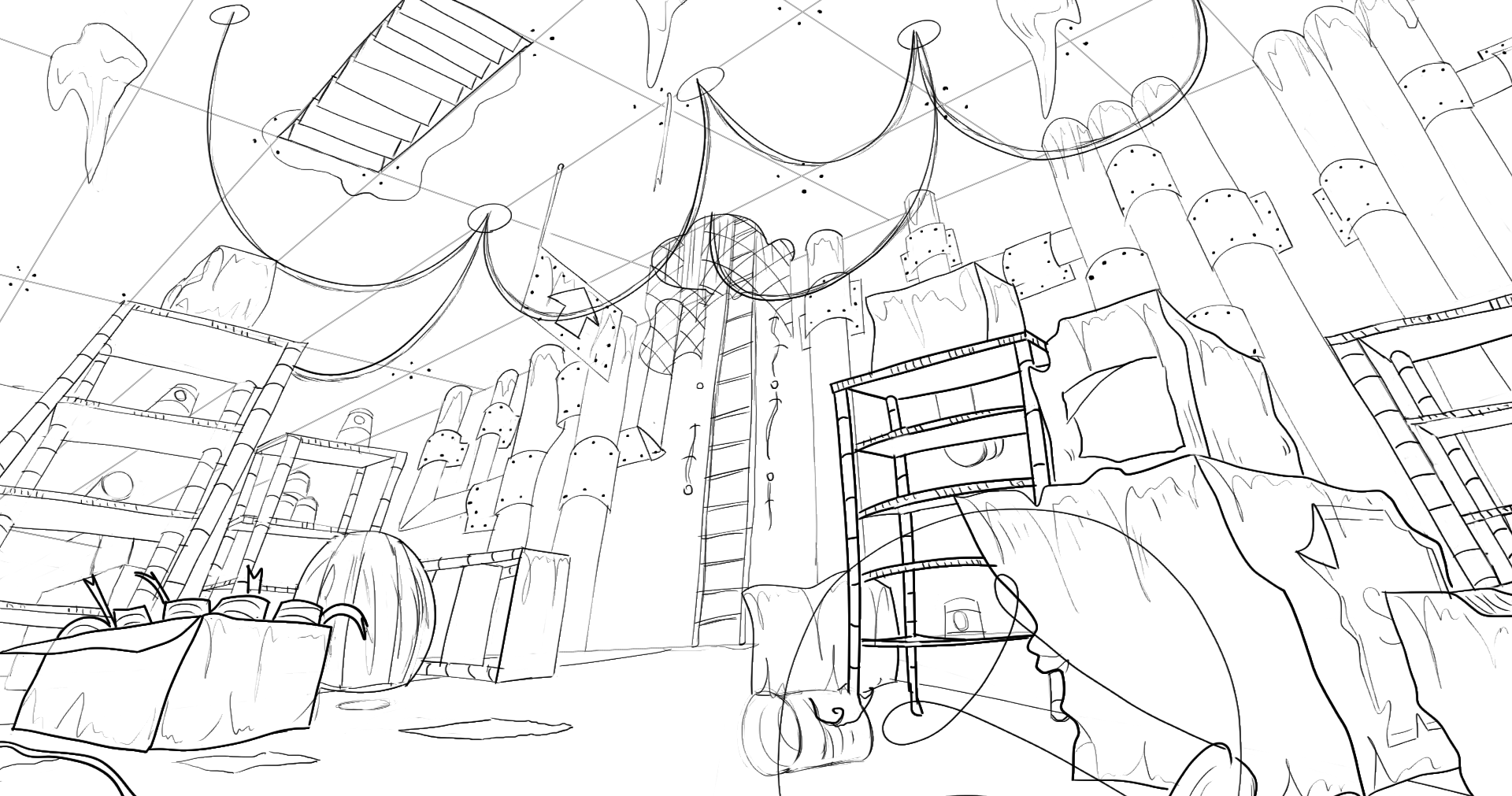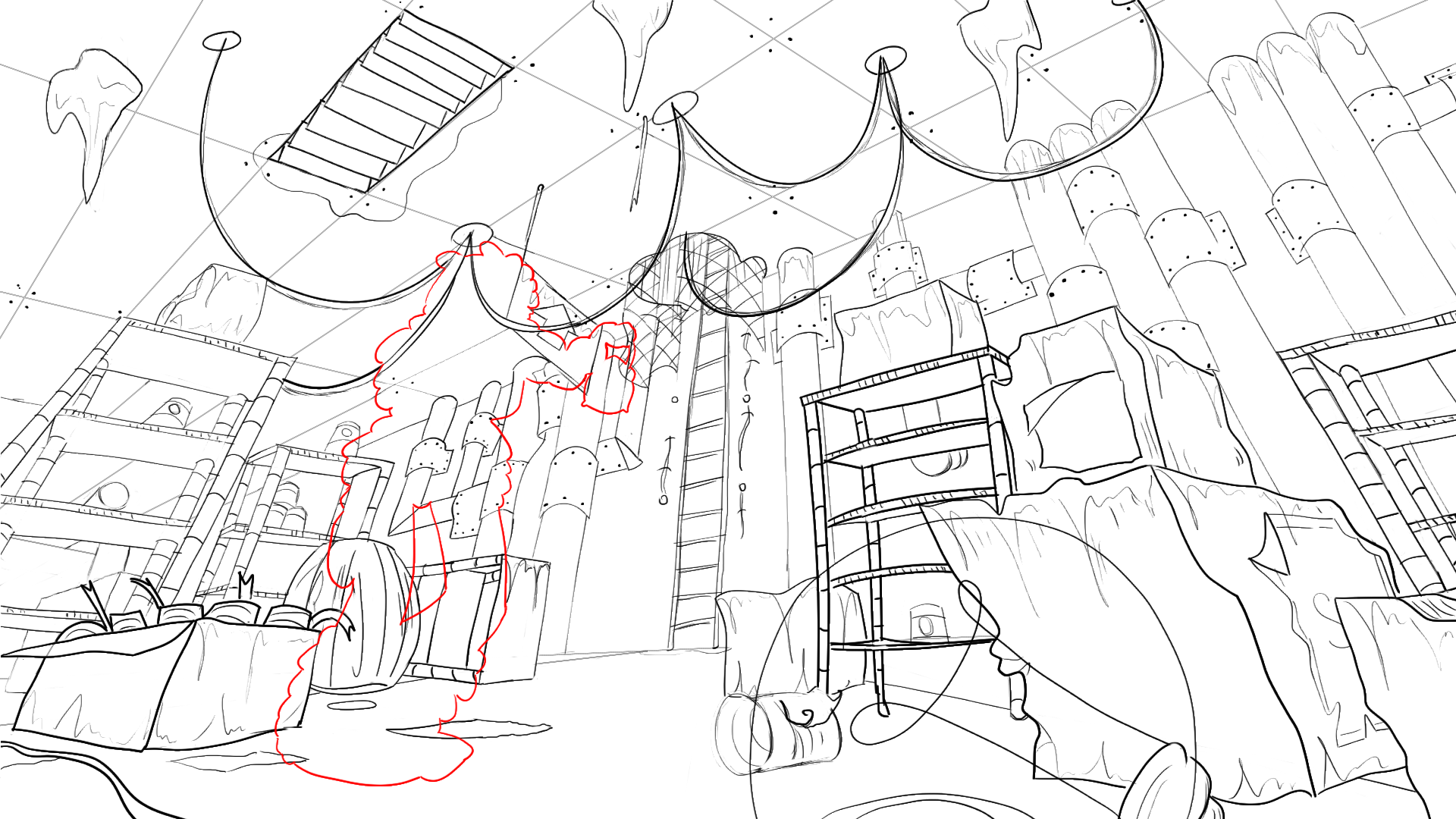 A collaboration between I and my classmate whom put together the color palette. Unfortunately I no longer have that colored file. This is concept art in relation to the 'Winter Sunlight.'  This background design is located in the same environment. The original color palette id was dark blues.